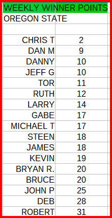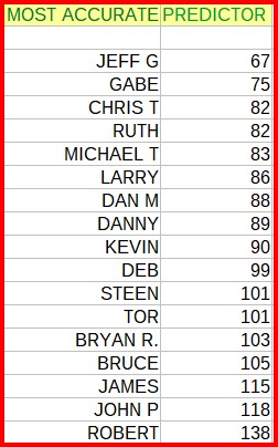 Chris T. was a mere 2 points off and todays winner of Duckpoll. Here’s how everyone did:
